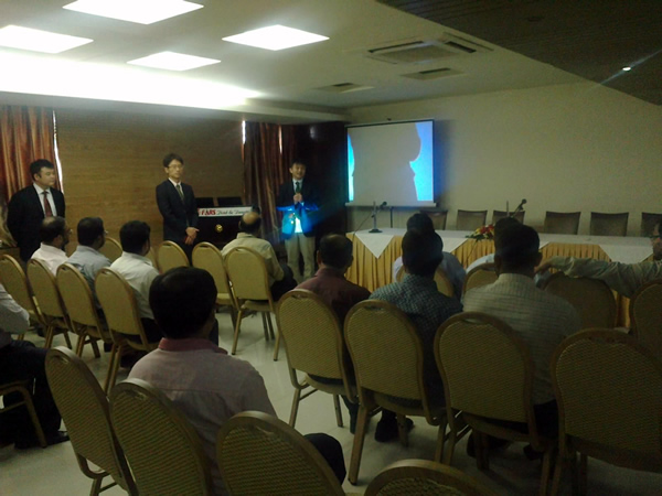 バングラディシュ Islami Bank Hospital へ東芝製High End CT AquilionPRIMEの1号機を納入し、8月30日に開所式を行った。 Dhaka市内のホテルで、約500名のドクター、政府関係者等出席のもと、AquilionPRIMEのお披露目を行った。 インド・チェンナイのApollo Hospitalからドクターをスピーカーとして招待し、東芝製High End CTの経験含めてレクチャーを頂いた。 翌日8月31日には、病院にて技師を集めた技術セミナーを開催。 実際の機器を使いながら説明し、AquilionPRIMEの高いパフォーマンスをご理解頂くことが出来た。